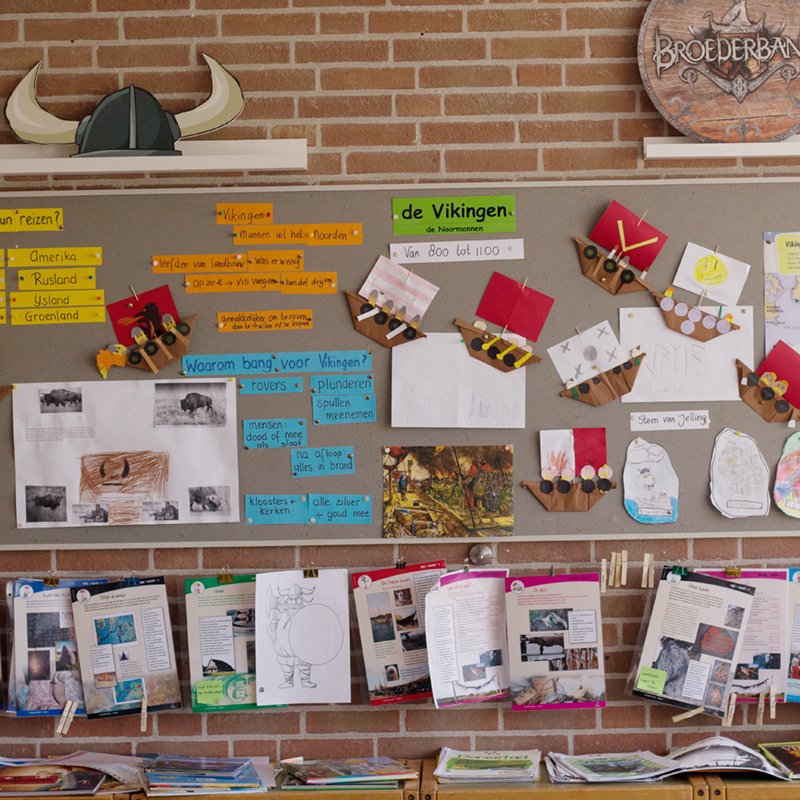 Er wordt thematisch gewerkt aan een geschiedenis-, aardrijkskunde- of een natuuronderwerp, zoals de Tweede Wereldoorlog en klimaat.